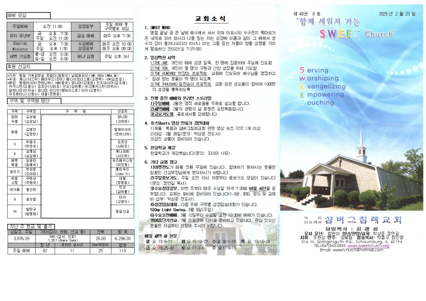 February 23, 2025 . 샴버그침례교회 2025년 2월 23일 교회 주보