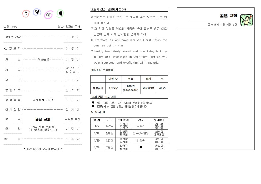 2025년 1월 5일 교회 주보
