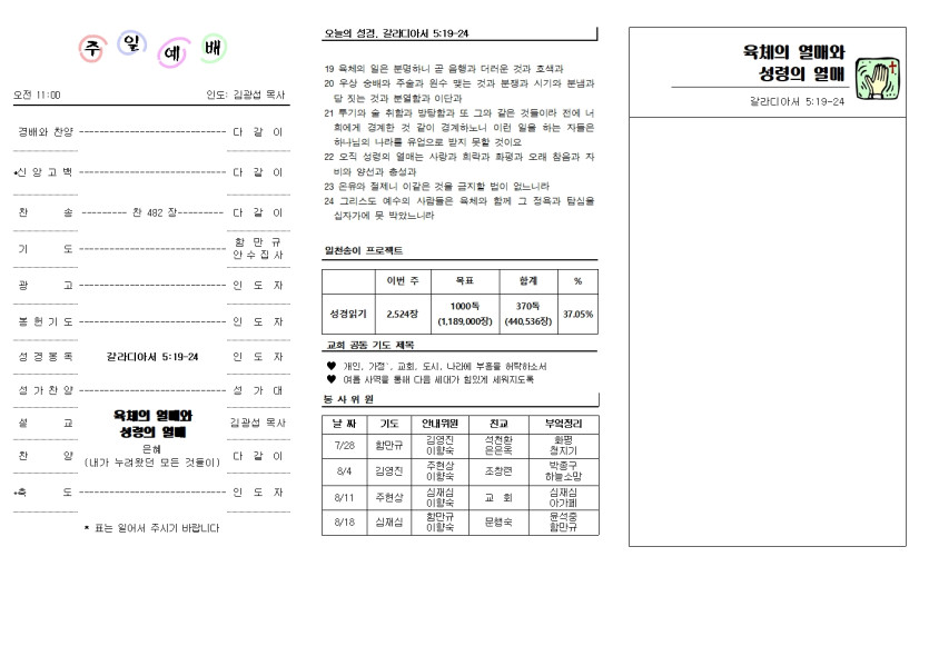2024년 7월 28일 교회 주보