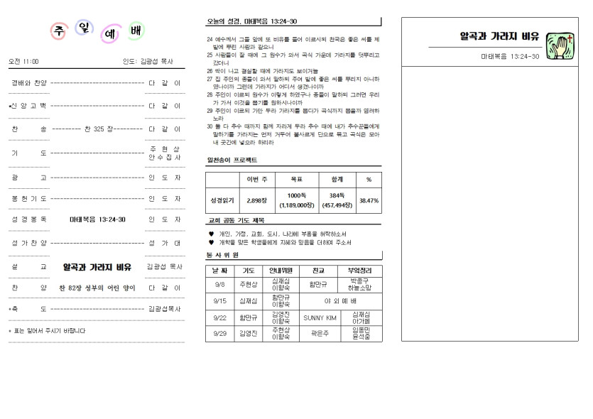- 다음글2024년 9월 1일 교회 주보 24.09.04