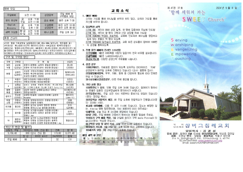 September 11, 2024 . 샴버그침례교회 2024년 9월 8일 교회 주보