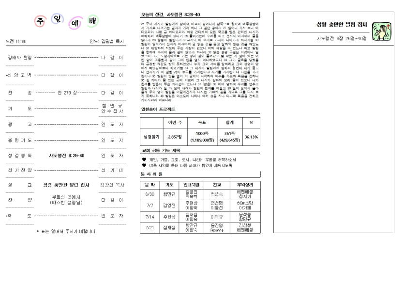 2024년 6월 30일 교회 주보